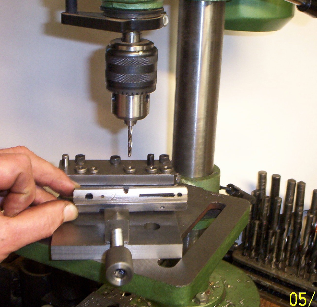process is in a separate drill press. Drilling this steel breech for the