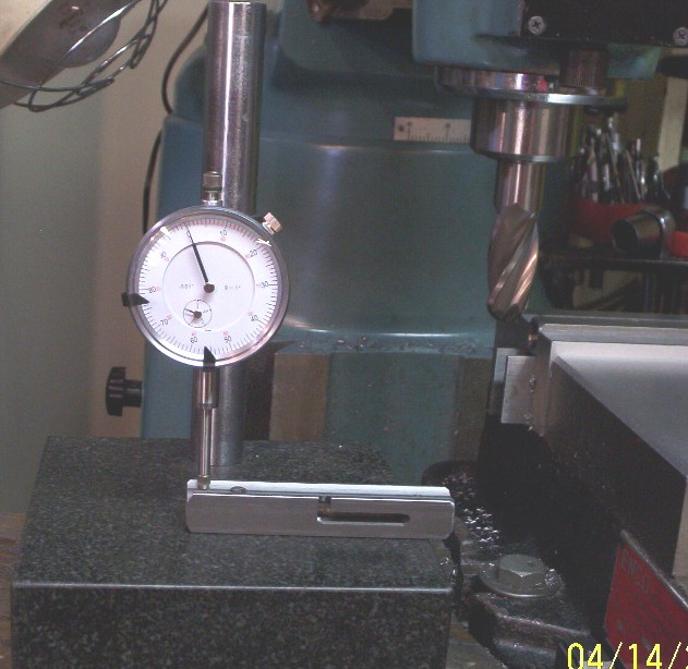 is milled it's placed under the dial gauge and gauge is zeroed at the contact