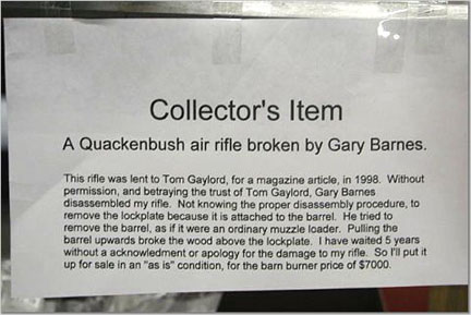 I put up with stories like this all the time. For whatever reason, some folks are just gonna want to see the guy that's doing well fall down a staircase. However; when someone goes to such lengths, to post slander on their table at a major airgun show before the general public ... then those pics are posted on a public internet forum targeted specifically at the airgun enthusiast, that's a bit over the top. I'll set the record straight.