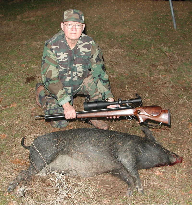 John took this 200 pound sow with a Quackenbush .308, from 45 yards away.
